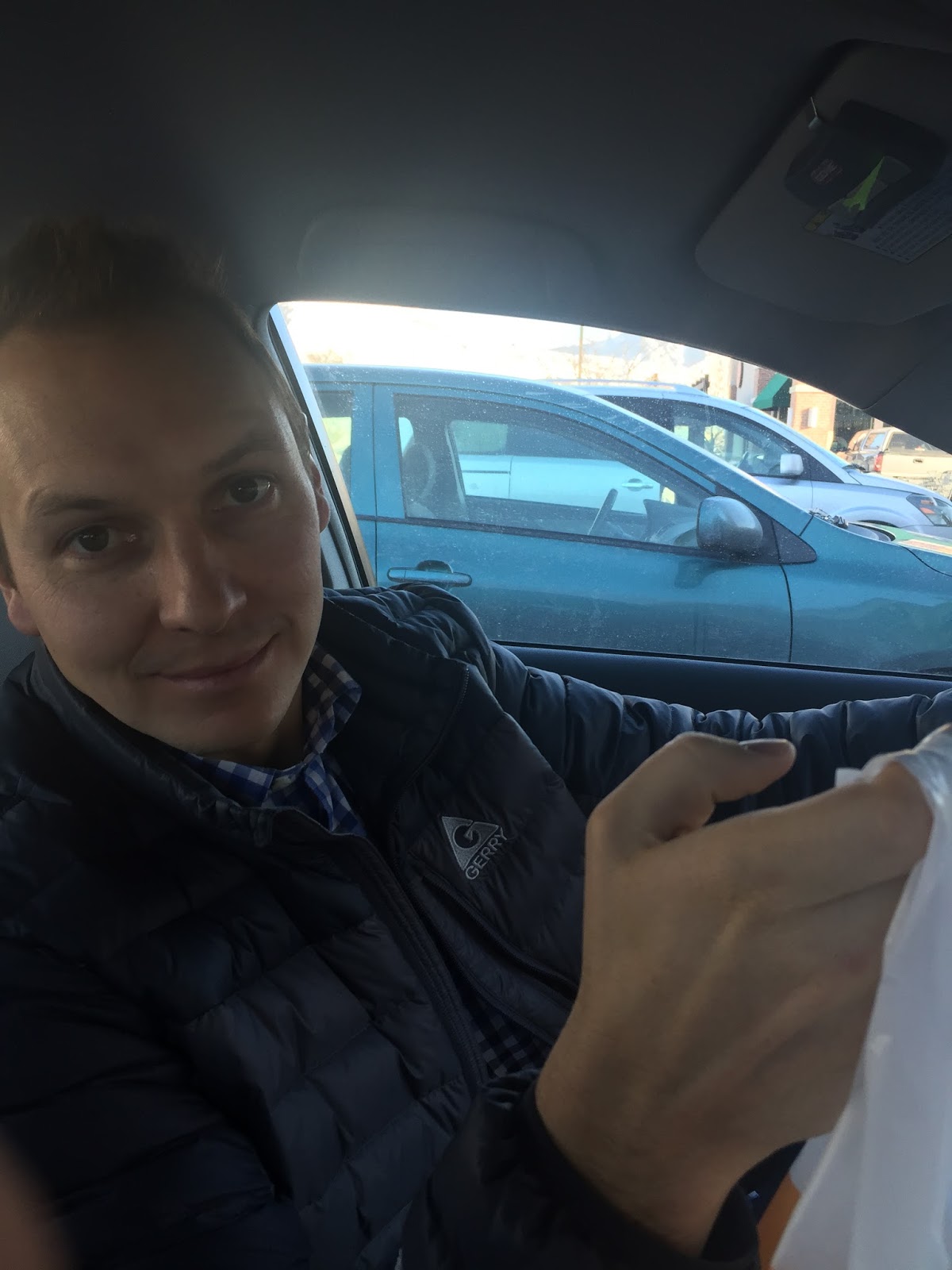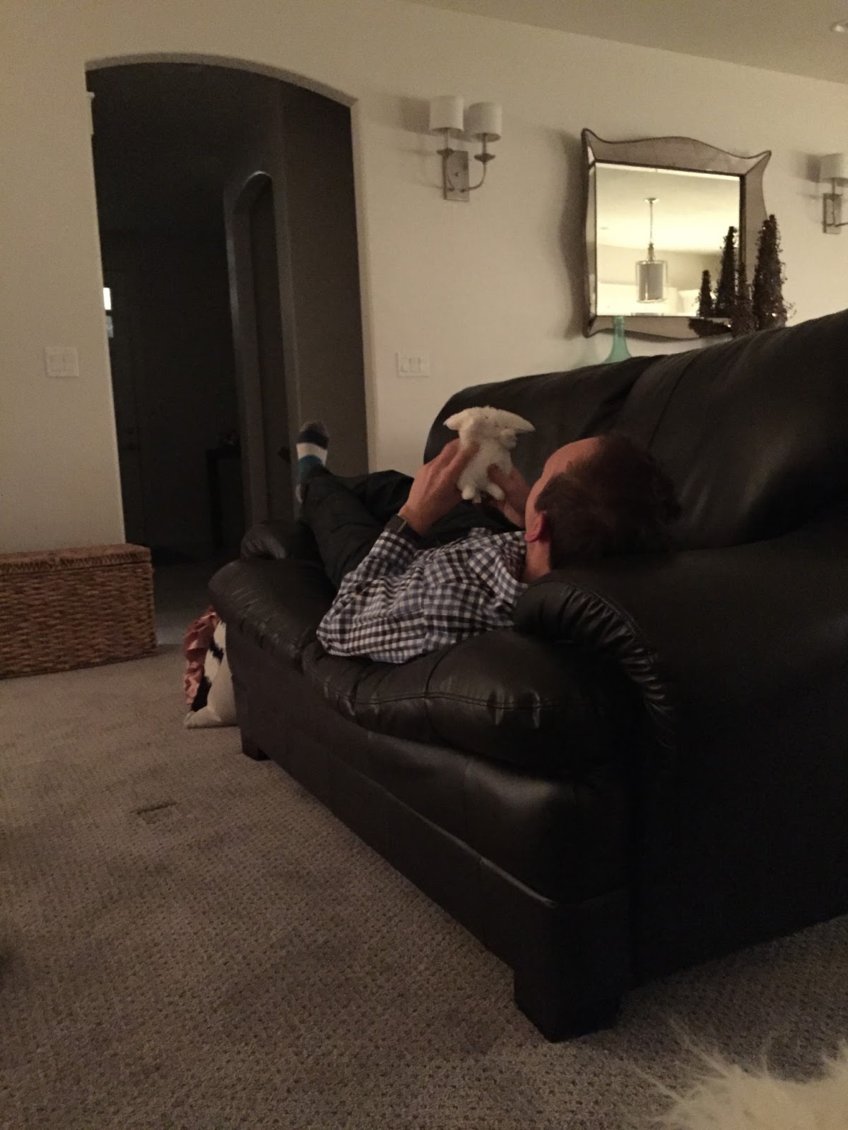 Your dad stopped by at Costa Vida to get us lunch, we ate at home then I took a nap. Your grandma (my mom) and Aunt Jocelyn came over to hang out with me while your dad went to the BYU basketball game with Grandpa Steve. Your great-grandpa Dex came over too! Aunt Katelyn was a on date. Jocelyn gave me a present for you…your very first present! It’s a little bunny and it’s the coziest thing in the whole world. I have a deal for you. How about we share it?! 😉