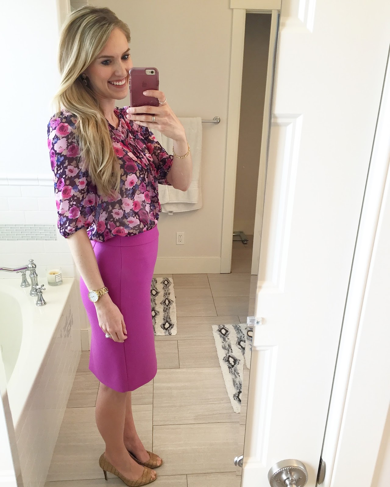 12 weeks on Sunday right after church! I was so surprised to look in the mirror and see the bump popping a little bit in this skirt 🙂